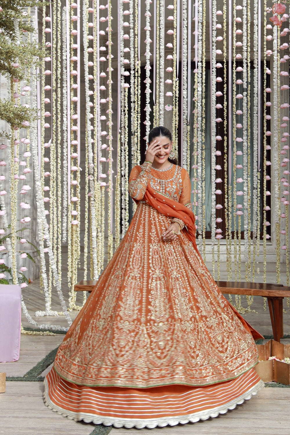 Embroidered Front Body on Chiffon with Hand Embellished Embroidered Back Body on Chiffon Embroidered Sleeves on Chiffon with Hand Embellished Embroidered Sleeves Patti on Organza Embroidered Front Kali on Chiffon Embroidered Back Kali on Chiffon Embroidered Front + Back Hem Border on Organza Embroidered Dupatta on Chiffon Embroidered Dupatta Pallu Patti on Organza Solid Dyed Raw Silk for Blouse Solid Dyed Raw Silk for Lehnga